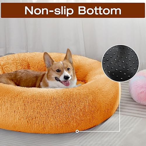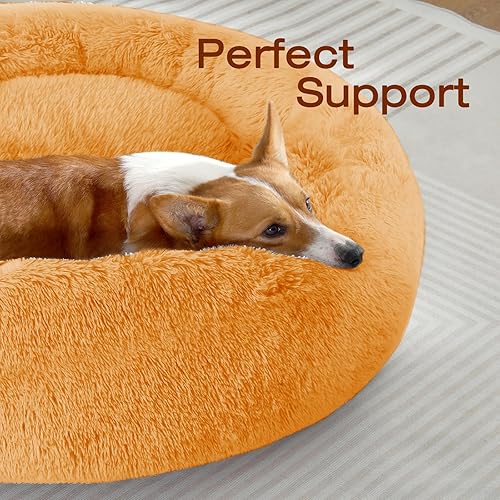 SIZE CHOICE: Calming donut fluffy plush faux fur dog beds are a must have for every pet owner 50/60/70/80/100 centimetres pet beds, ideal for small, medium and large dogs/ cats of any age weighing up to 10/20/40/50/100 lbs