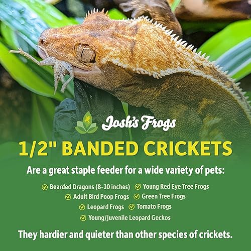 Superior to the European house cricket, Banded Crickets have a longer lifespan, are easier to keep, and are healthier for your pet reptiles and amphibians! See our size recommendations in the description
