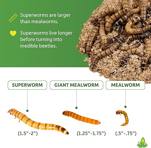 Longer lived than mealworms, superworms can exist in the pupae stage for up to three months before turning into inedible beetles.