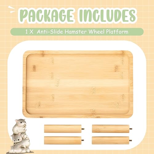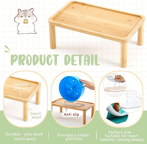 Natural Materials: the hamster wheel platform is made of natural pine and beech, which is strong, stable and long lasting; The hamster wheel platform provide more space for hamsters to play