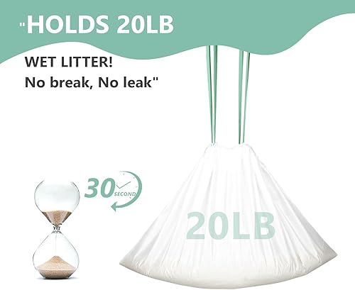 Mess-Free Drawstring Cleanup: Double-stitched drawstrings seal waste in seconds—just pull, lift, and toss. Minimizes dust, spills, and odors, saving time on scrubbing and keeping hands clean. Perfect for weekly changes or daily scooping.