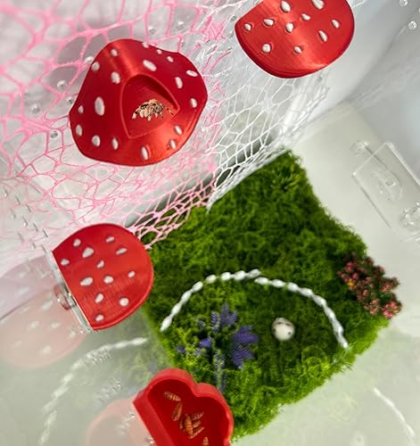 【Climb, Hide, and Play】Designed to support your spider’s natural behavior, the platforms offer fun climbing routes and cozy hiding spots. The red-and-white mushroom shapes add a playful, fairy-tale charm to every move
