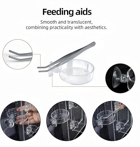Complete Starter Kit Set: This jumping spider enclosure accessories set includes everything: 1 terrarium, 1 feeding dish, and 1 tweezers, making feeding and maintenance for your small reptile or insect safe and convenient