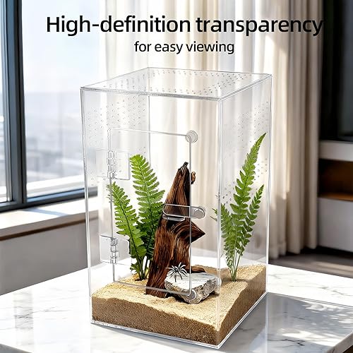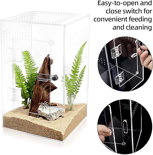 Premium Acrylic Habitat: Crafted from crystal-clear, durable acrylic, this spider enclosure offers an escape-proof and secure terrarium for your jumping spiders and tarantulas, providing excellent visibility and lasting durability