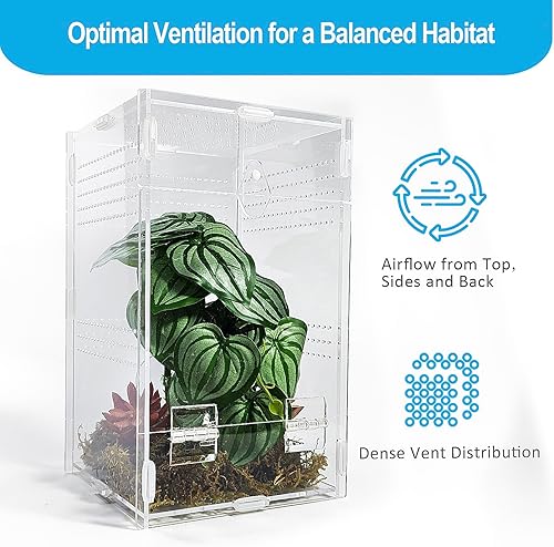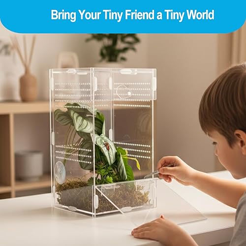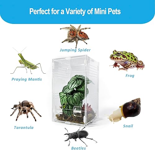 Ample Living Space: 6 x 6 x 10 inches acrylic enclosure offers room for climbing and web-building. Perfect for adult jumping spiders, tarantulas up to 3 inches, and small arboreal pets