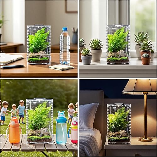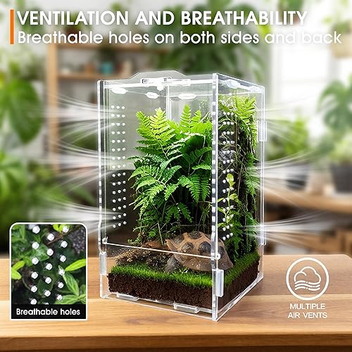 【Compact & Spacious Habitat】This acrylic reptile terrarium measures 4.7" x 4.3" x 7.8", providing ample space for baby reptiles and small animals to move around comfortably—perfect for home or classroom observation.