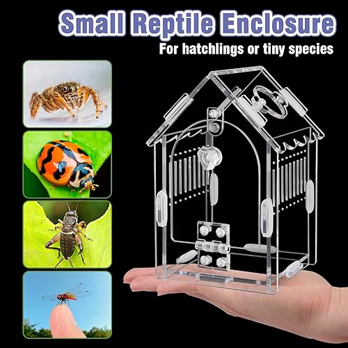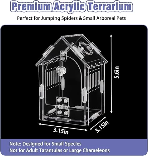 【Perfect Mini Habitat Size】 Measuring 8x8x14cm (3.15"L x 3.15"W x 5.6"H), this compact spider enclosure is expertly designed for delicate web-spinning and climbing, ideal for juvenile or small arboreal pets.