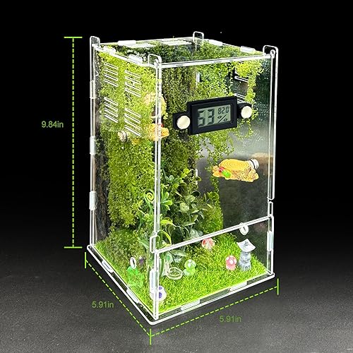 Jumping spider enclosure:Our jumping spider enclosure measures 9.5 x 5.5 x 5.5 inches, providing ample space for climbing and activity, ideal for your pet jumping spider.