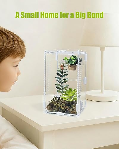 Clear and Durable Acrylic: Thick transparent acrylic delivers crystal-clear viewing from all angles and long-lasting durability without warping or bending, perfect for observing your pets’ climbing and web-building activity