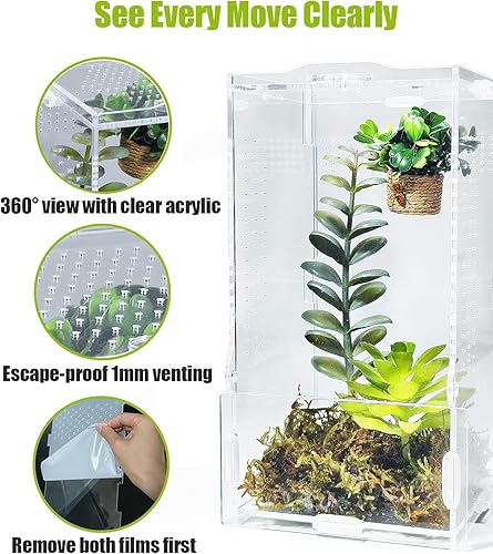 Escape-Proof Design: 1 mm vents provide balanced airflow and humidity, preventing escapes while keeping your jumping spiders, tarantulas, and other small arboreal pets comfortably contained