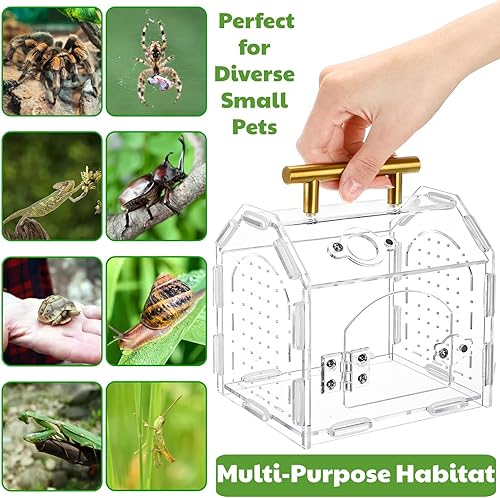 Premium Acrylic Material: Made of high quality acrylic, this transparent terrarium allows you to observe your pet from all perspectives, better monitor your pet's condition and interact with your pet. The spider enclosure is sturdy, durable and not easy to break.