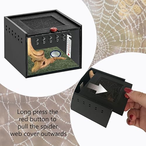 Pull and Lock Design: The spider terrarium has a pull-out design that makes it easy for you to clean and feed your small reptiles, insects and other bugs on a daily basis, and a locking design that makes it easy to lock and prevents your small pets from opening the lid and escaping, which is very practical