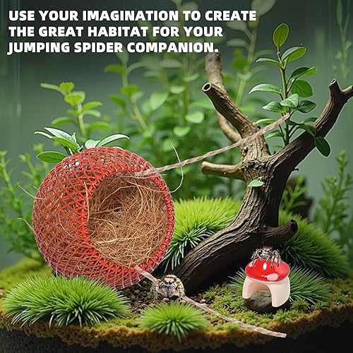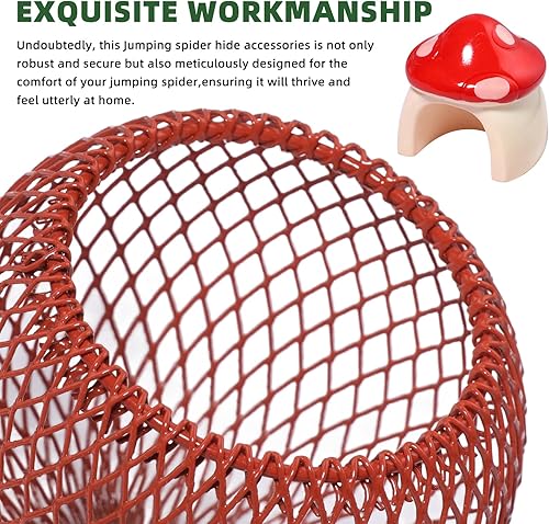 Premium Quality: This jumping spider hide cage is made of premium metal, the jumping spider mushroom is made of resin, which is safe and eco-friendly material and no odor, no burrs