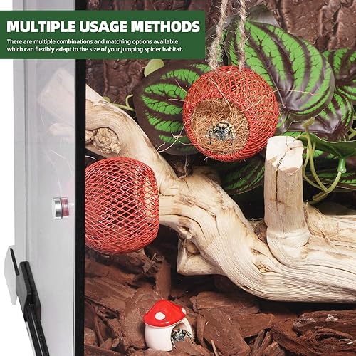 Easy To Install: You can attach the metal jumping spider cage anywhere in the cave with 2 magnets, or attach it to the top of the spider enclosure with jumping spider rope. The jumping spider mushroom decor can be placed on any level