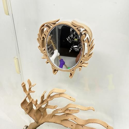 Designed for spiders, it allows them to easily observe their own image, thus stimulating curiosity and desire to explore.