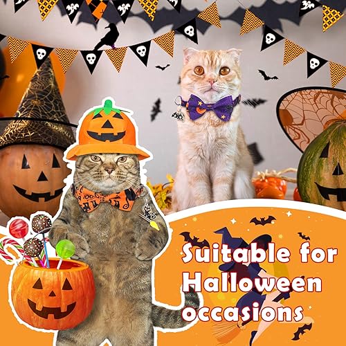 Sturdy for Long Time Use: these Halloween cat bow ties collars are made of sturdy nylon material, safe and lightweight, not easy to tear or fade,the plastic buckle is sturdy and reliable, which can secure the collar around any dog's neck safely, comfortable to wearing for a long time