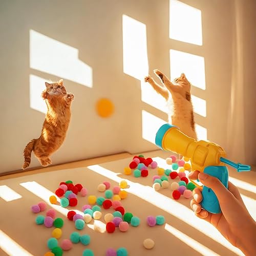 Cat toys for bored indoor adult cats: This Cat puzzle toyincludes one launcher and 20 plush balls. Shoot soft plush balls and engage your cat in exciting cat games. Enjoy playing together indoors or outdoors as you watch your cat's playful antics.