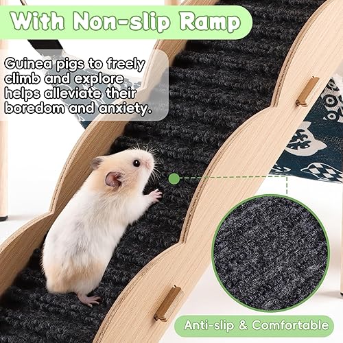 Non-Slip Ramp: Our non-slip ramp is designed with a soft suede surface that reduces friction on smooth surfaces against paws and claws, allowing guinea pigs to freely climb and explore helps alleviate their boredom and anxiety. This is undoubtedly the perfect place for guinea pigs.