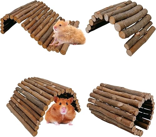 Made of natural Fruit wood and two flexible metal wires. So these wooden ladder bridge is flexible and sturdy and shapeable. A place to sit, play climb or rest. You can bend the bridge any way you want. Add a natural look to your pet's home.