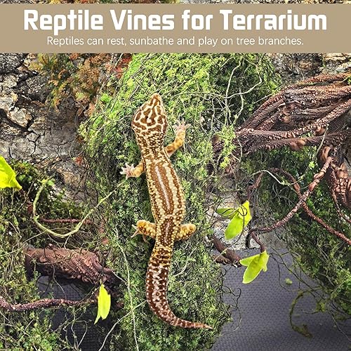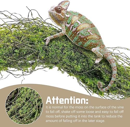 Perfect Tank Decoration: The moss of the terrarium vines mimics the texture of moss in nature, with realistic details, providing a perfect place for pets to perch and hide, they can weave in and out of it, climbing, easing boredom of loneliness and exercising at the same time.