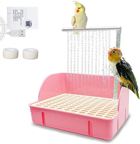 Enjoy Simulated Rain Bathing: The parrot shower bath tub comes with a 360° rotatable rain - like showerhead featuring two rows of 26 water outlets in total. When the showerhead releases water, the water flow is evenly distributed, falling just like natural rain, enabling the birds to fully enjoy a delightful bathing time.
