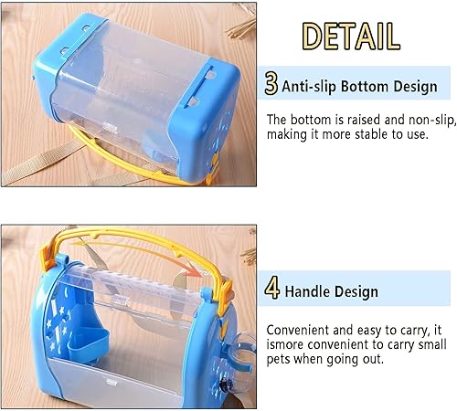 【Comfortable and Breathable】The top of the portable hamster cage is equipped with multiple ventilation holes, ensuring proper airflow, maintaining a comfortable environment, and making your pet feel safe and comfortable, just like at home. The spacious interior provides enough room for your pet to move around comfortably and enjoy the travel experience.