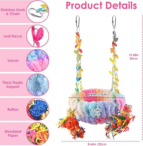 EASY TO INSTALL: With safe hooks and decorated chains for easily hanging the bird nest in the bird cage. Your bird will surely love to swing in this cozy bed