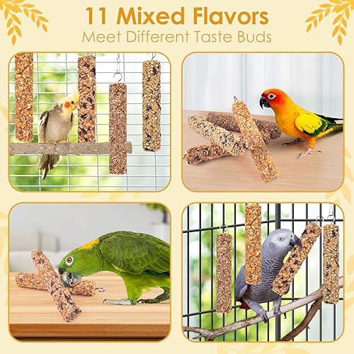 CORE NUTRIENT TREATS: Multiple natural grains mixed by using honey sticked and shaped, rich in coarse fiber, vitamins, minerals and trace elements, easy to chew, and can promote birds' digestion, which is beneficial for their intestinal health
