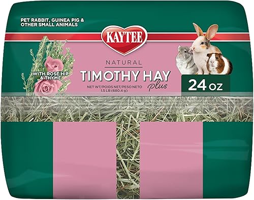 Long-strand, natural timothy hay plus spearmint, marigold, and carrot to provide a variety of textures and flavors for added enrichment