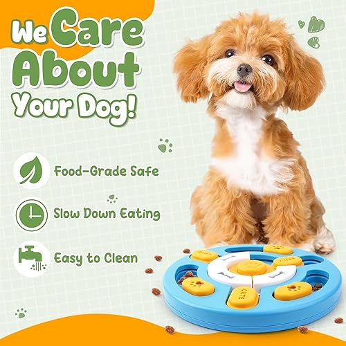 Challenges Brainy Puzzles:The included dog puzzle toy combines treat-seeking fun with a built-in squeaker to add excitement. Its interactive design promotes focus, problem-solving, and mental stimulation, turning mealtime into a rewarding mental workout