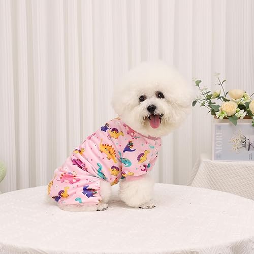 【Dog onesie in multi-function】 Dog pajamas in yellow duck printing, is made of soft stretchable velvet, keeping your doggie warm during chilly days, providing a good cover for dogs that have skin issue, protects healing scars, allergies or other skin problems, prevents licking and scratching during recovery Hurt rash, puppy dog onesie in a style, preventing excess dog's shedding hair from furniture and bed.