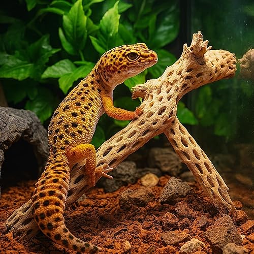 REPTILE WOOD Enhance your leopard gecko's habitat with cholla wood pieces for climbing, exploring, and hiding. The perfect leopard gecko accessories mimick their natural environment, oferring exercise and leopard gecko hideouts. Made from large dried cholla cactus wood, each piece is untreated and safe, offering an eco-friendly option for your tank or terrarium. The cholla cactus branch not only decorates your habitat but also serves as a natural climbing structure for reptiles, aiding in their activity and enrichment.