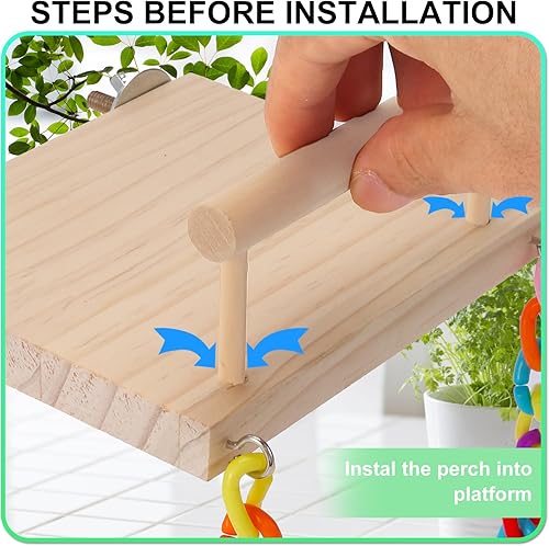 【Easy Installation and Adjustment】 - Bird toys come with complete screws and nuts for quick tool-free assembly. The two platforms feature adjustable positioning to adapt to various cage spaces, allowing parrots to enjoy their playtime anytime.