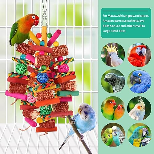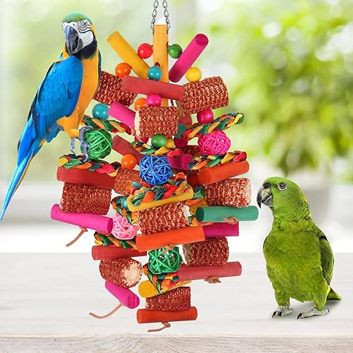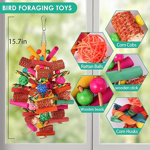 natural and safe materials:Birid toys are Using natural corn cobs, corn husks, rattan balls, environmentally friendly colored beads, and colored wooden sticks to provide parrots with a better chewing experience