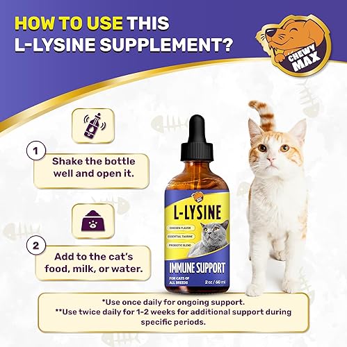 LIQUID FORM: Our L-Lysine drops for cats are formulated for quick absorption. Since cats don't produce L-Lysine by themselves, simply add it to their food or directly into their mouth.
