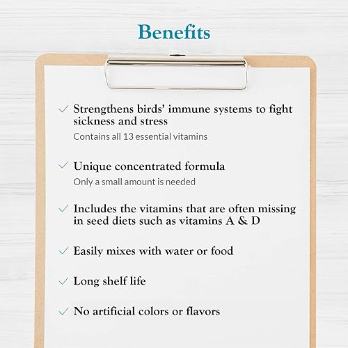 Includes the vitamins that are often missing in seed diets such as vitamins A and D