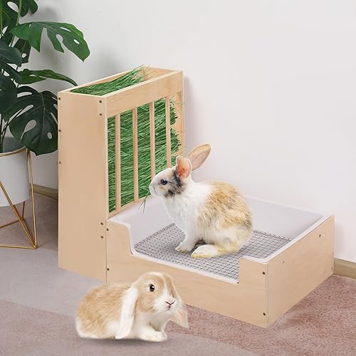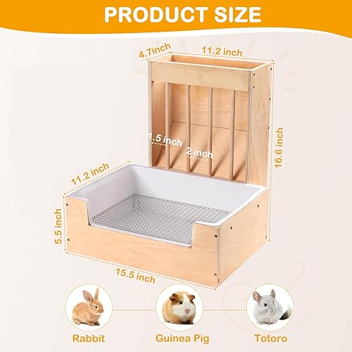 [Perfectly Proportioned for Your Pet]: Measuring 16.6 x 11.2 x 4.7 inches, our rabbit hay feeder suits all guinea pigs, chinchillas, and small to medium rabbits. The 15.5 x 11.2 x 5.5 inch litter box provides ample waste space for easy clean-up
