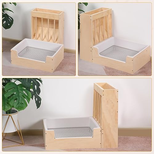 [Mess Management Made Easy]: Keep your pet tidy with our rabbit litter box that separates waste from food. The removable litter pan is easy to clean, while the foot pads ensure your pet stays clean, and the top rack opening simplifies hay refills