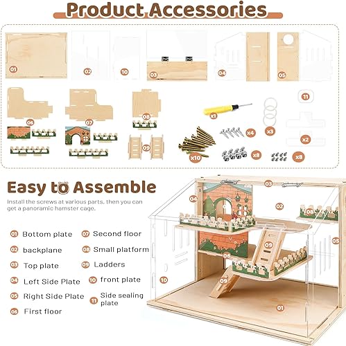 High-Quality Wooden Habitat: Our spacious hamster habitat is expertly crafted from premium materials, ensuring a resistant and chewproof design for the safety of your small pets like hamsters, gerbils, mice, and more. The wooden construction provides a cozy and natural environment for your furry friend