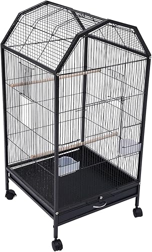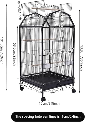 Large Space: The movable pet bird flight cage with 5 doors measures 17.9x17.9x39.9 inches. Its large movement space lets birds stretch their wings freely, bringing more fun to parakeets, finches, or lovebirds and supporting their natural activities. This bird cage not only allows birds to rest and entertain themselves but also allows them to breed safely without being affected by the outside world.
