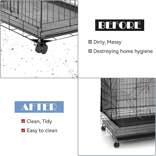 Easy To Inatall: The bird seed catcher requires no additional tools or complicated steps, and is designed with an elastic fit that simply slides over the cage to install, no tying or cutting required, making it quick and easy.