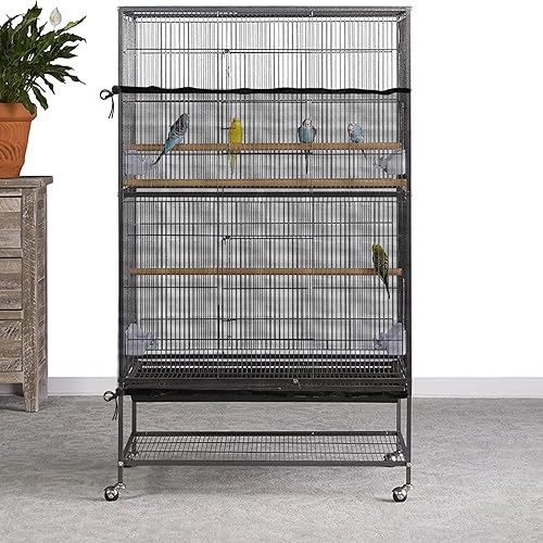 Product Size: The bird cage skirt design is adjustable and equipped with elastic bands that can be firmly fixed on the cage to prevent sliding. The girth is 118 inches and the height is 31 inches, suitable for birdcages of different sizes.