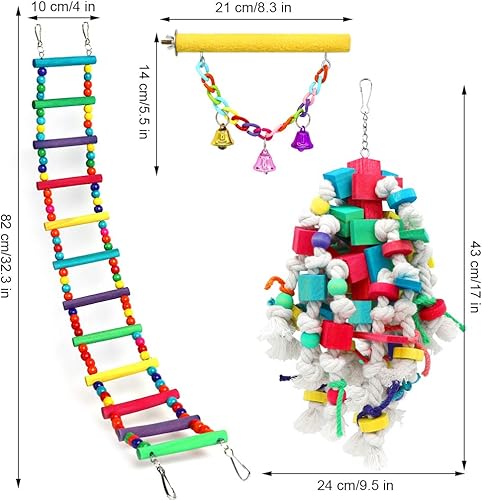 LARGE BIRD TOYS SIZE: Color Block Toy: 17 x 9 1/2in (43*24CM), Climbing Ladder: 28 1/2 x 4in (72.5 *10CM), Scrub Stick: 8 3/16 inch x 5.5in (21*14CM), Diameter 1in/2.5CM