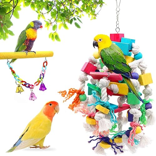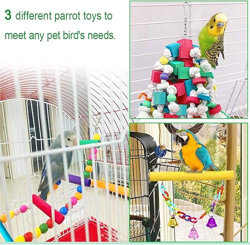 PACKAGE INCLUDE: 3 different parrot toys to meet any pet bird's needs. Perfect bird toys are available for large and middle parrots such as Childhood Macaw, African Grey Parrot, Amazon Parrot and Alexander