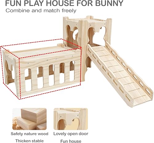 【Easy to Clean & Assemble】This bunny wooden house features a user-friendly design that is easy installation. The removable panels or open layout allow for easy access when cleaning, so you can keep your pet’s environment fresh and hygienic with little effort.