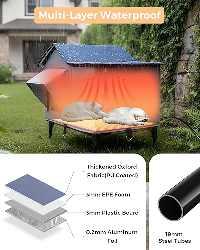 Lightweight & Extremely Durable: Crafted from high-quality, wear-resistant Oxford fabric, this heated cat house is far more portable than traditional plastic or wooden houses, without sacrificing strength or longevity