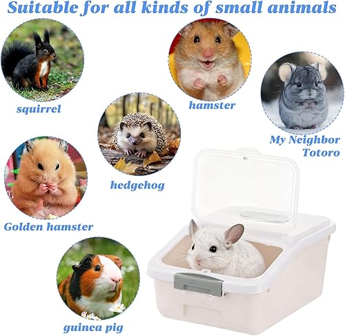 Multi-Functional Use: This small animal bathroom can be used as a dust bath house, litter box, pet toilet, food storage bin, or hideout. Suitable for chinchillas, guinea pigs, dwarf hamsters, gerbils, hedgehogs, and other rodents, meeting their natural needs to dig, burrow, and play
