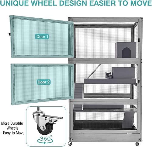 Durable Construction: The ladder edges are wrapped in aluminum, providing a chew-resistant barrier that ensures the longevity of your cage. The base is equipped with wheels, making it easy to move the cage around your home without disturbing your pets.