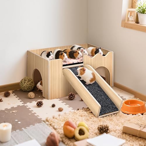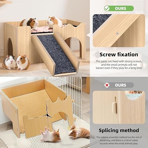 【Easy Installation and Easy to Use】: The newly upgraded guinea pig wooden hideout is easy to assemble. It allows you to quickly create a guinea pig habitat for your pet. The stable structure of wood boards + screws is used to ensure the service life of the guinea pig house.
