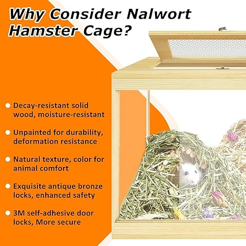 Pet-friendly natural habitat: The Nalwort hamster cage is made of solid wood and acrylic materials, featuring the natural wood grain and texture of wood, realistically simulating the hamster's natural habitat and providing a comfortable living space